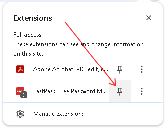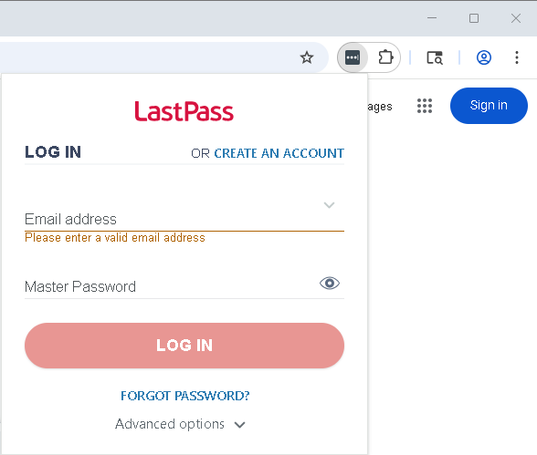 Estimated Reading Time: < 1 MinuteNote: These steps apply after you have installed the LastPass password manager extension in Chrome.
